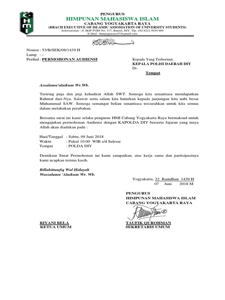 Contoh surat audiensi ke walikota dari organisasi intra kampus.
